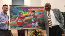"In His Hands" (Angelo Dundee and Carmen Basillio) Original Oil by Jace McTier |